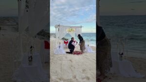 With their son front row for the sweetest moment, he asked her to make their family official #cancun
