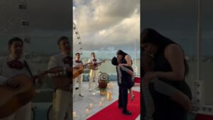 Love in every note… and a perfect yes by the beach #cancunproposal #shesaidyes
